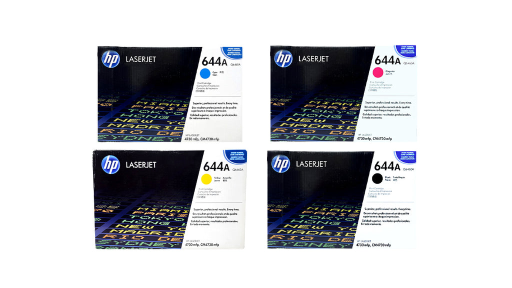 Product Name | HP 644A Toner 4 Pack - Q6460A Q6461A Q6462A Q6463A - Black Cyan Magenta Yellow - Original HP LaserJet Toner Cartridges |